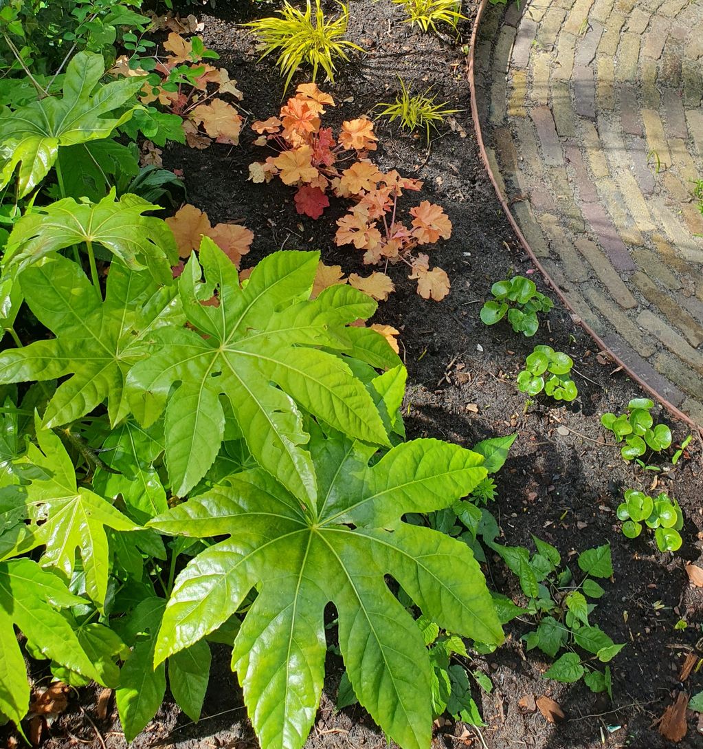 De beplanting sluit aan bij de bestaande bomen. De eigenaar houdt van oranje en geel!